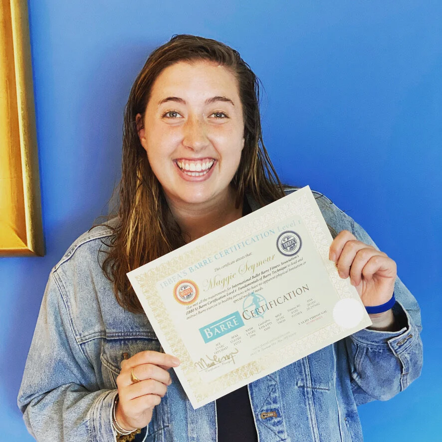 I was a barre student for years in NYC before I decided to make the move to instructor! Covid hit and we had to put a pause on that, but after a lot of hard work and dedication I am officially IBBFA certified! I cannot wait to share my love of barre with all of you!